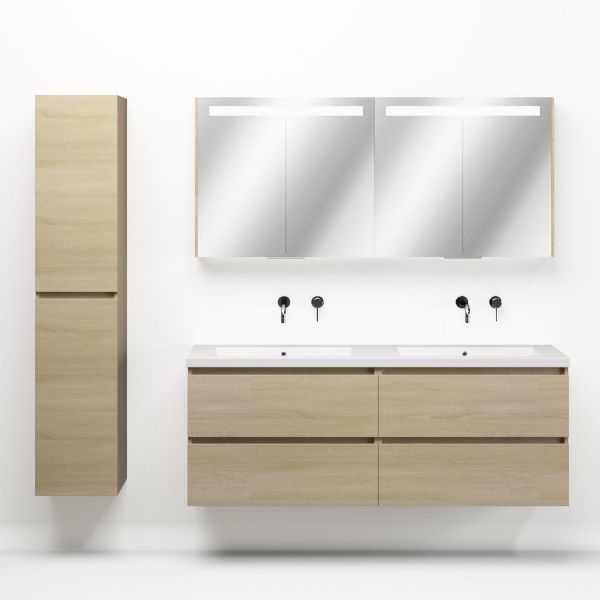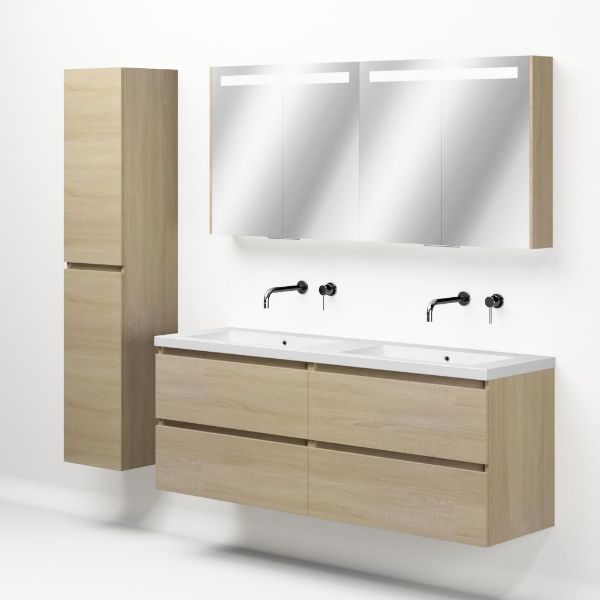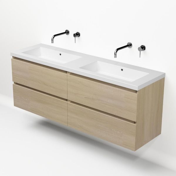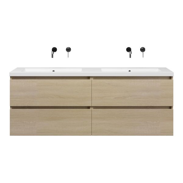 Bellanti Elena/Esta-Q badmeubel 160x46 4 softclose laden eiken licht greeploos quartz dubbele wastafel mat wit zonder kraangaten