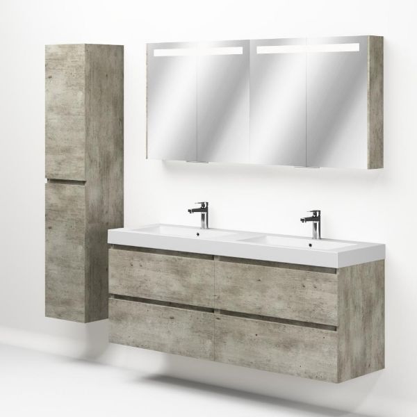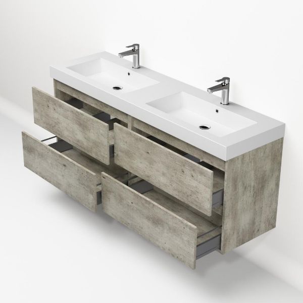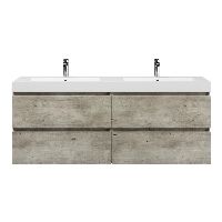 | | Bellanti Elena/Esta-Q badmeubel 160x46 4 softclose laden steigerhout look grijs greeploos polystone dubbele wastafel mat wit 2 kraangaten |