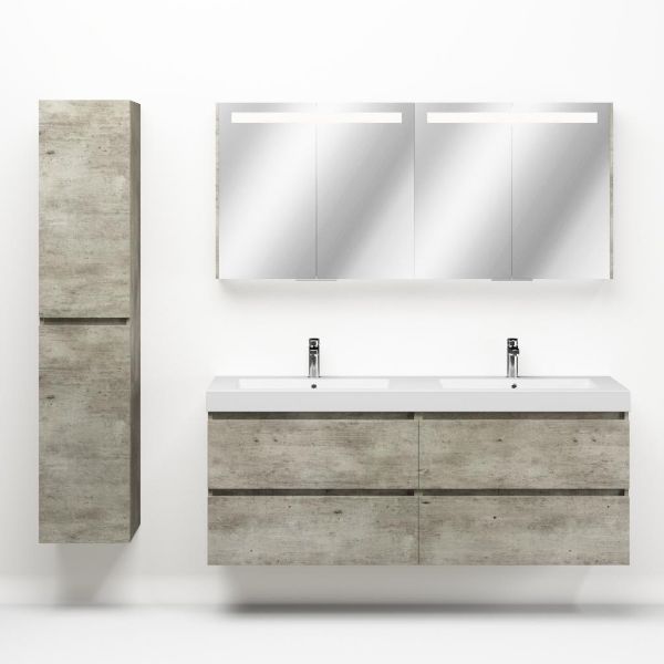 | Bellanti Elena/Esta-Q badmeubel 160x46 4 softclose laden steigerhout look grijs greeploos polystone dubbele wastafel mat wit 2 kraangaten |