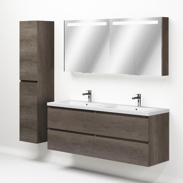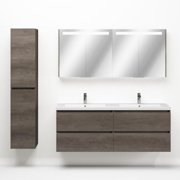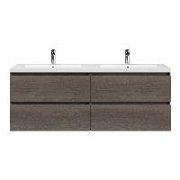 | | Bellanti Elena/Esta-Q badmeubel 160x46 4 softclose laden olm donker grijs greeploos polystone dubbele wastafel mat wit 2 kraangaten |