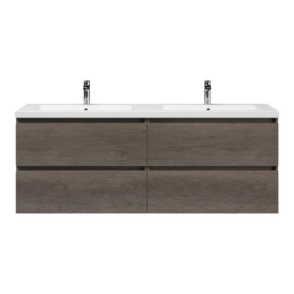 | Bellanti Elena/Esta-Q badmeubel 160x46 4 softclose laden olm donker grijs greeploos polystone dubbele wastafel mat wit 2 kraangaten |