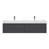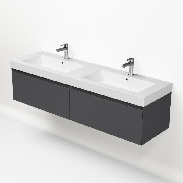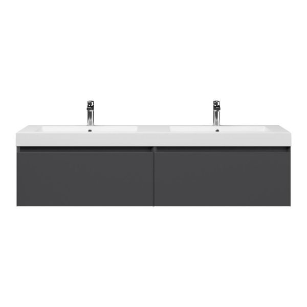 | Bellanti Solo/Esta-Q badmeubel 160x46 2 softclose laden mat antraciet greeploos polystone dubbele wastafel mat wit met 2 kraangaten |