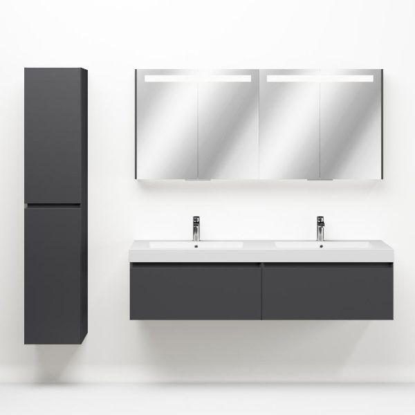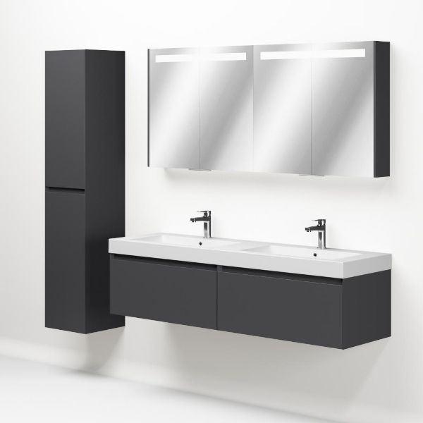 Greeploos badkamermeubel in de kleur antraciet mat is 160 cm breed. De wastafel is vervaardig in quartz en heeft de kleur wit mat. Dit badkamermeubel met deze wastafel is leverbaar tussen de 60 cm t/m 160 cm