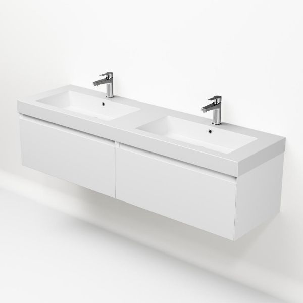 | Bellanti Solo/Esta-Q badmeubel 160x46 2 softclose laden mat wit greeploos polystone dubbele wastafel mat wit met 2 kraangaten |