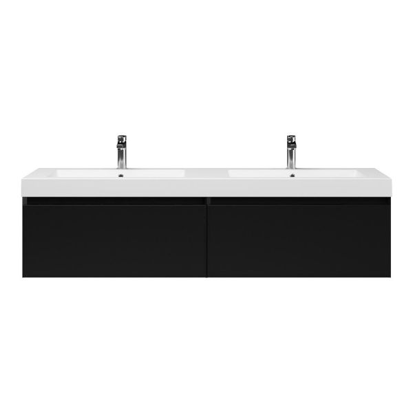 | | Bellanti Solo/Esta-Q badmeubel 160x46 2 softclose laden mat zwart greeploos polystone dubbele wastafel mat wit met 2 kraangaten |