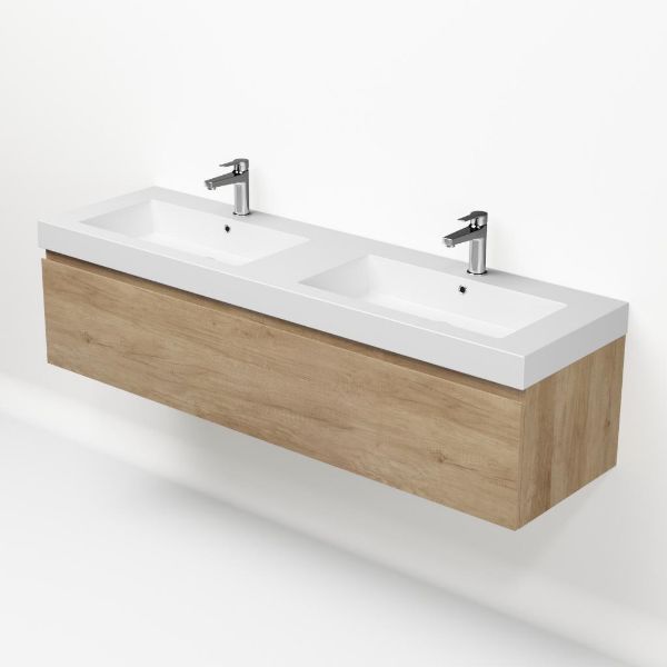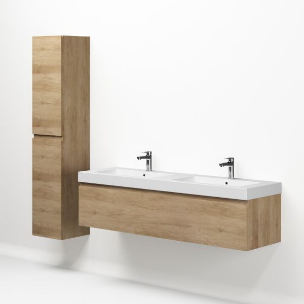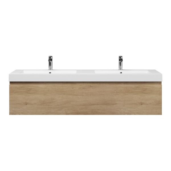 Greeploos badkamermeubel in de kleur olm is 160 cm breed. De wastafel is vervaardig in quartz en heeft de kleur wit mat. Dit badkamermeubel met deze wastafel is leverbaar tussen de 60 cm t/m 160 cm