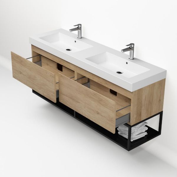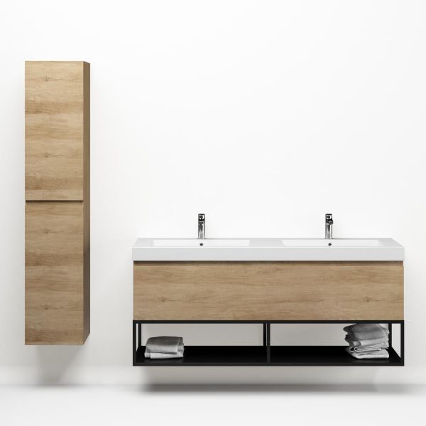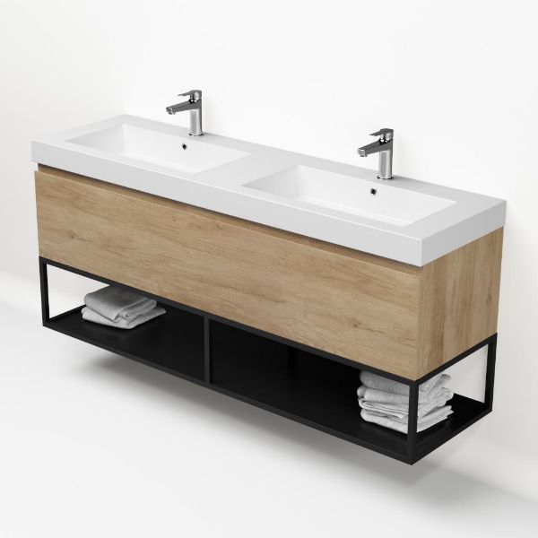 | | Bellanti Solo/Tela/Esta-Q badmeubel 160x46 2 softclose laden olm greeploos polystone dubbele wastafel mat wit 2 kraangaten met mat zwart metalen frame |