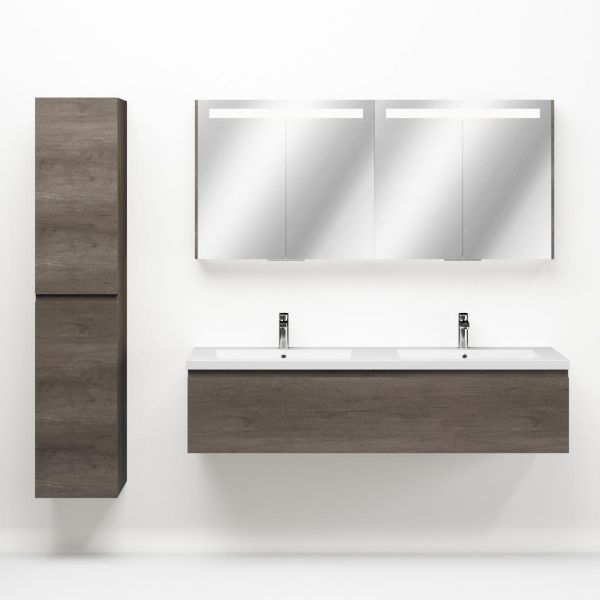 Greeploos badkamermeubel in de kleur olm donker grijs is 160 cm breed. De wastafel is vervaardig in quartz en heeft de kleur grijs mat. Dit badkamermeubel met deze wastafel is leverbaar tussen de 60 cm t/m 160 cm