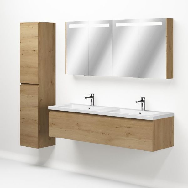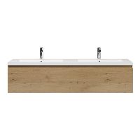 Greeploos badkamermeubel in de kleur eiken natuur is 160 cm breed. De wastafel is vervaardig in quartz en heeft de kleur wit mat. Dit badkamermeubel met deze wastafel is leverbaar tussen de 60 cm t/m 160 cm