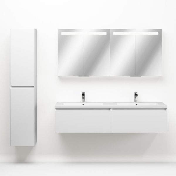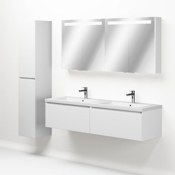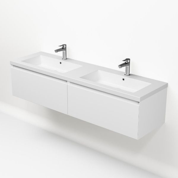 Greeploos badkamermeubel in de kleur wit mat is 160 cm breed. De wastafel is vervaardig in quartz en heeft de kleur grijs mat. Dit badkamermeubel met deze wastafel is leverbaar tussen de 60 cm t/m 160 cm