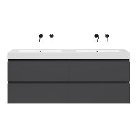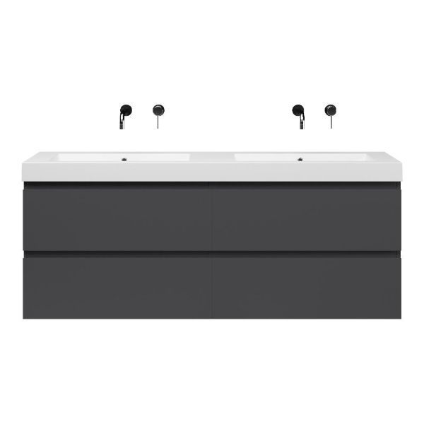 Bellanti Gisella/Esta-Q badmeubel 160x46 4 softclose laden mat antraciet greeploos quartz dubbele wastafel mat wit zonder kraangaten