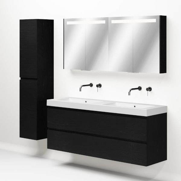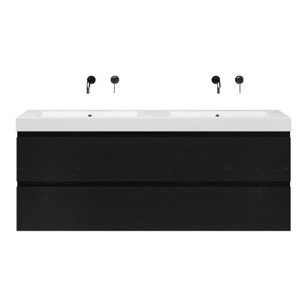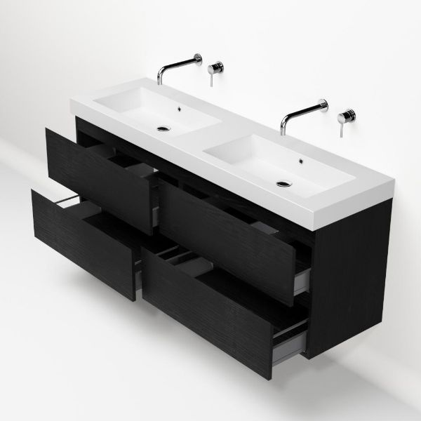 | | Bellanti Gisella/Esta-Q badmeubel 160x46 4 softclose laden zwart mat eiken greeploos quartz dubbele wastafel mat wit zonder kraangaten |