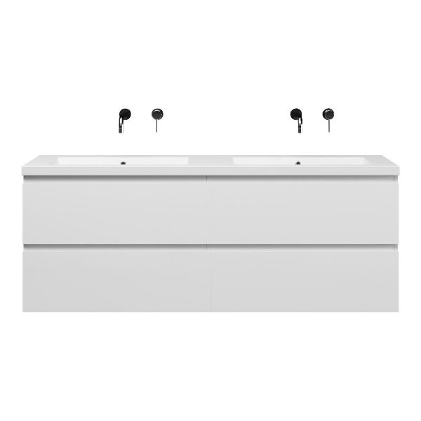 Bellanti Gisella/Esta-Q badmeubel 160x46 4 softclose laden hoogglans wit greeploos quartz dubbele wastafel mat wit zonder kraangaten
