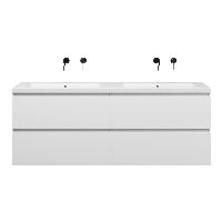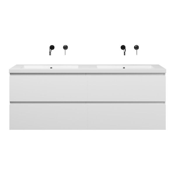 | | Bellanti Gisella/Esta-Q badmeubel 160x46 4 softclose laden mat wit greeploos quartz dubbele wastafel mat wit zonder kraangaten |