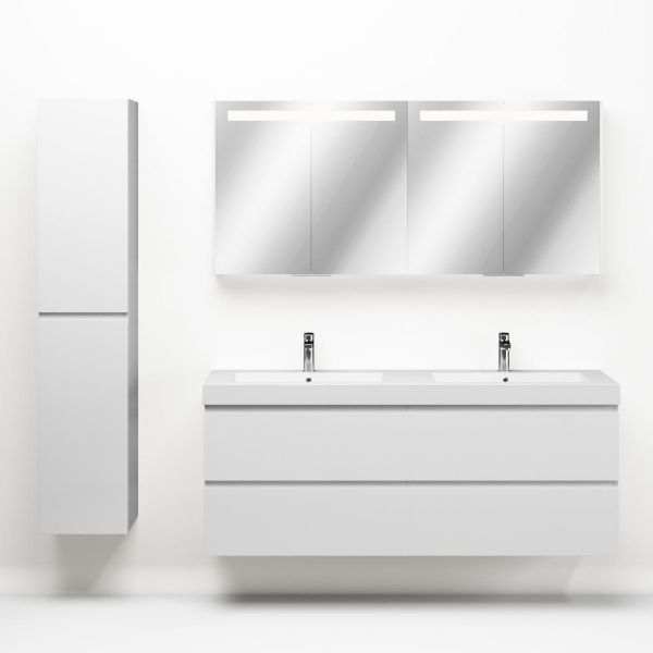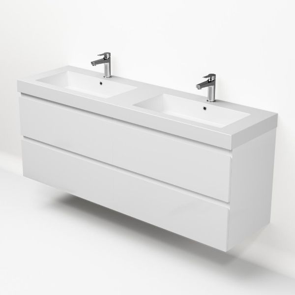 Greeploos badkamermeubel in de kleur wit hoogglans is 160 cm breed. De wastafel is vervaardig in quartz en heeft de kleur wit mat. Dit badkamermeubel met deze wastafel is leverbaar tussen de 60 cm t/m 200 cm