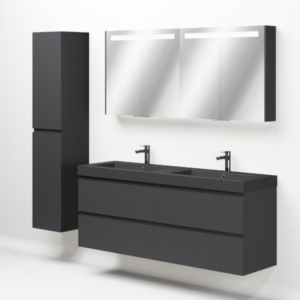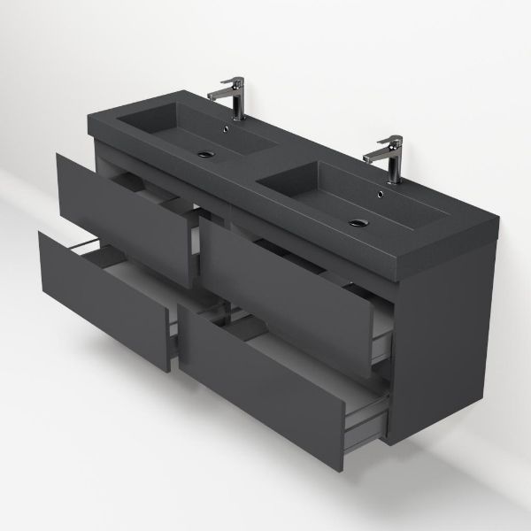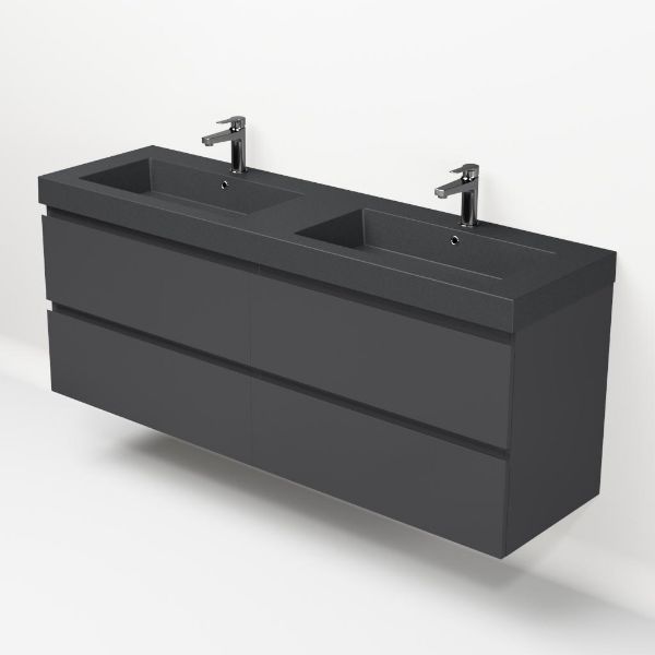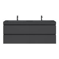 | | Bellanti Gisella/Esta-Q badmeubel 160x46 4 softclose laden mat antraciet greeploos polystone dubbele wastafel mat grijs met 2 kraangaten |