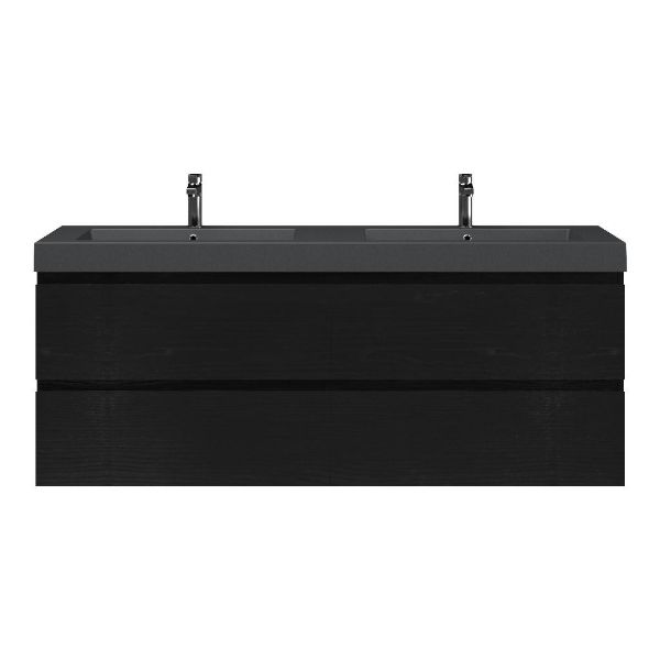 | Bellanti Gisella/Esta-Q badmeubel 160x46 4 softclose laden zwart mat eiken greeploos polystone dubbele wastafel mat grijs met 2 kraangaten |