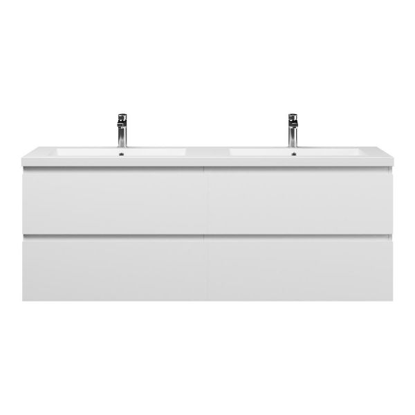 Bellanti Gisella/Esta-Q badmeubel 160x46 4 softclose laden mat wit greeploos polystone dubbele wastafel mat grijs met 2 kraangaten