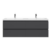 | | Bellanti Gisella/Esta-Q badmeubel 160x46 4 softclose laden mat antraciet greeploos polystone dubbele wastafel mat wit met 2 kraangaten |