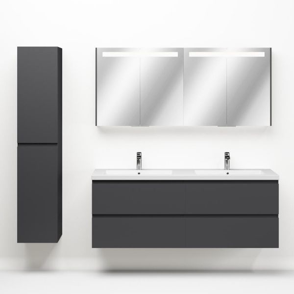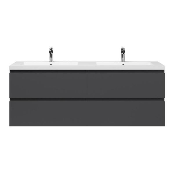 | Bellanti Gisella/Esta-Q badmeubel 160x46 4 softclose laden mat antraciet greeploos polystone dubbele wastafel mat wit met 2 kraangaten |