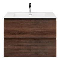 Greeploos badkamermeubel in de kleur walnoot is 80 cm breed. De wastafel is vervaardig in keramiek en heeft de kleur wit keramiek. Dit badkamermeubel met deze wastafel is leverbaar tussen de 60 cm t/m 120 cm
