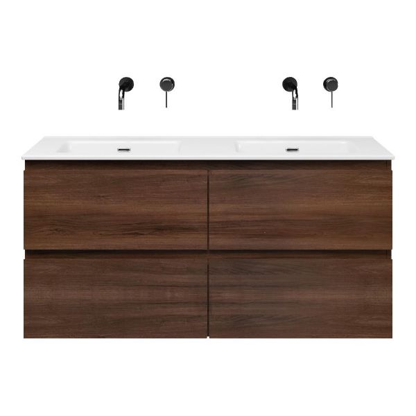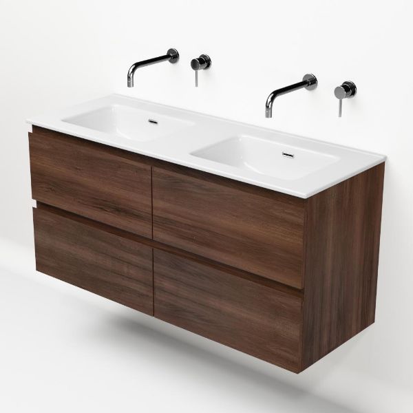 | | Bellanti Gisella/Etna badmeubel 120x46 4 softclose laden walnoot greeploos keramische wastafel dubbel wit zonder kraangat |