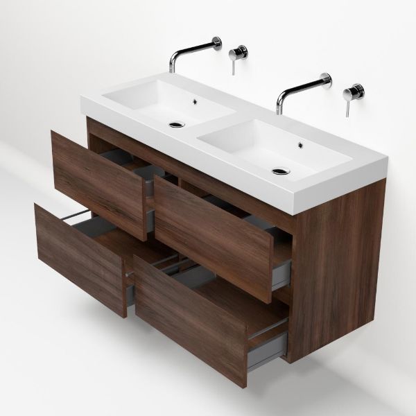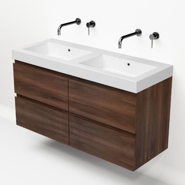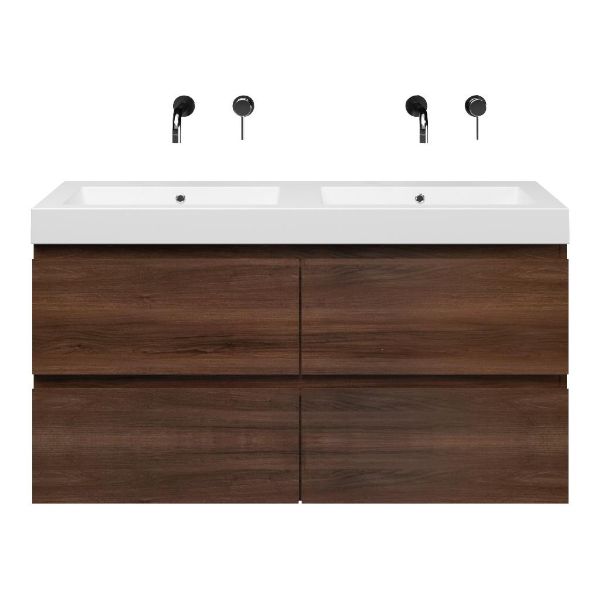 | | Bellanti Gisella/Esta-Q badmeubel 120x46 4 softclose laden walnoot greeploos quartz wastafel dubbel mat wit zonder kraangaten |
