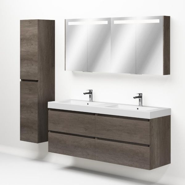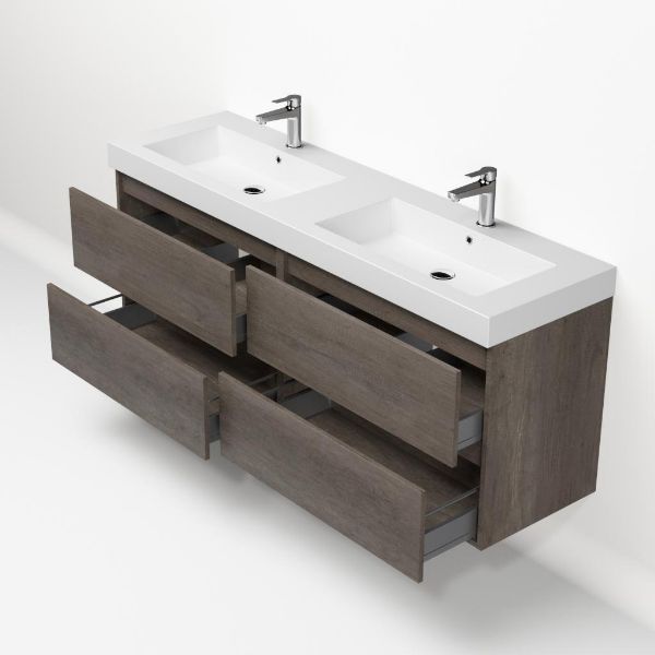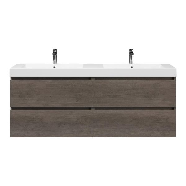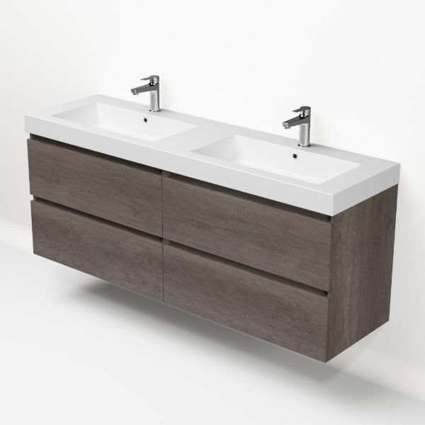 | | Bellanti Elena/Esta-Q badmeubel 160x46 4 softclose laden olm donker grijs greeploos polystone dubbele wastafel mat wit 2 kraangaten |