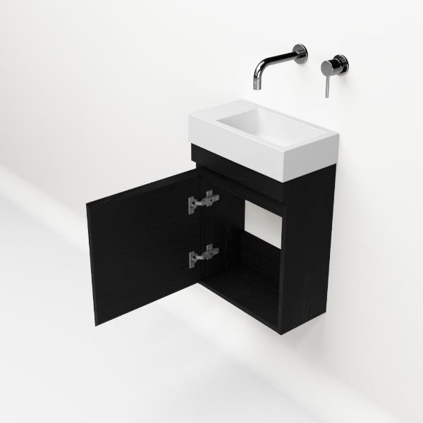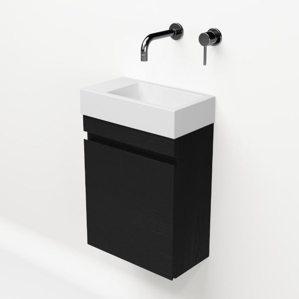 | | Bellanti Bona/Giada fonteinmeubel 40x22cm mat zwart eiken met polystone wastafel ZONDER kraangat links |