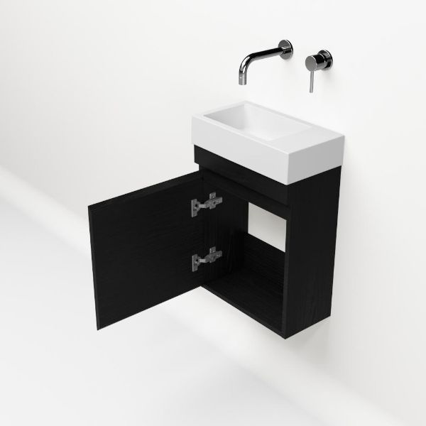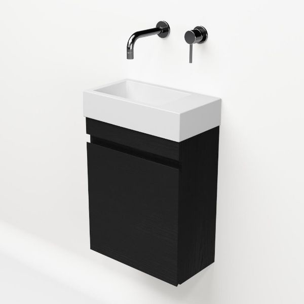 | | Bellanti Bona/Giada fonteinmeubel 40x22cm mat zwart eiken met polystone wastafel ZONDER kraangat rechts |