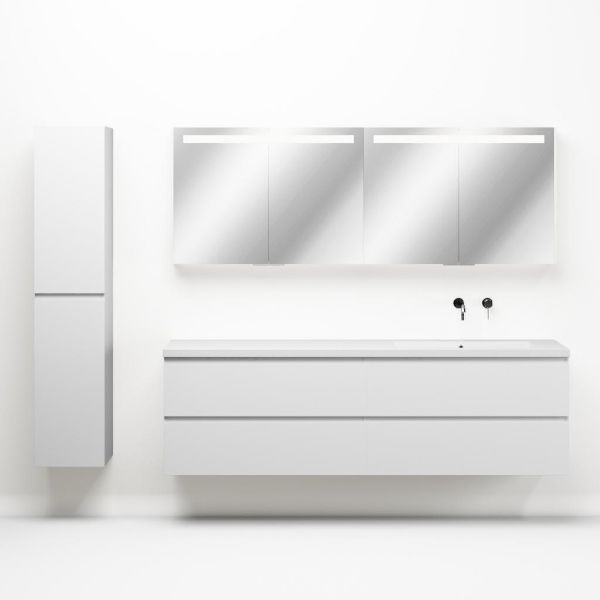 Greeploos badkamermeubel in de kleur wit mat is 200 cm breed. De wastafel is vervaardig in polystone en heeft de kleur wit. Dit badkamermeubel met deze wastafel is leverbaar tussen de 60 cm t/m 200 cm