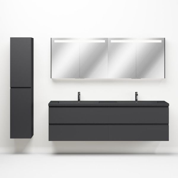 | Bellanti Gisella/Esta-q badmeubel 200x46 4 softclose laden mat antraciet greeploos quartz dubbele wastafel mat grijs met 2 kraangaten |