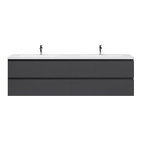 Greeploos badkamermeubel in de kleur antraciet mat is 200 cm breed. De wastafel is vervaardig in polystone en heeft de kleur wit. Dit badkamermeubel met deze wastafel is leverbaar tussen de 60 cm t/m 200 cm
