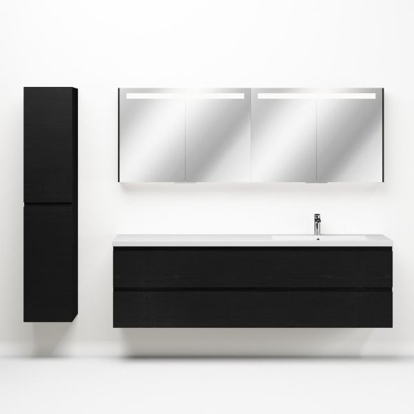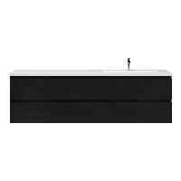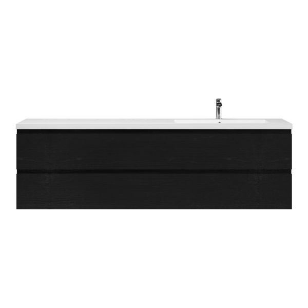 Greeploos badkamermeubel in de kleur zwart mat eiken is 200 cm breed. De wastafel is vervaardig in quartz en heeft de kleur wit mat quartz. Dit badkamermeubel met deze wastafel is leverbaar tussen de 60 cm t/m 200 cm