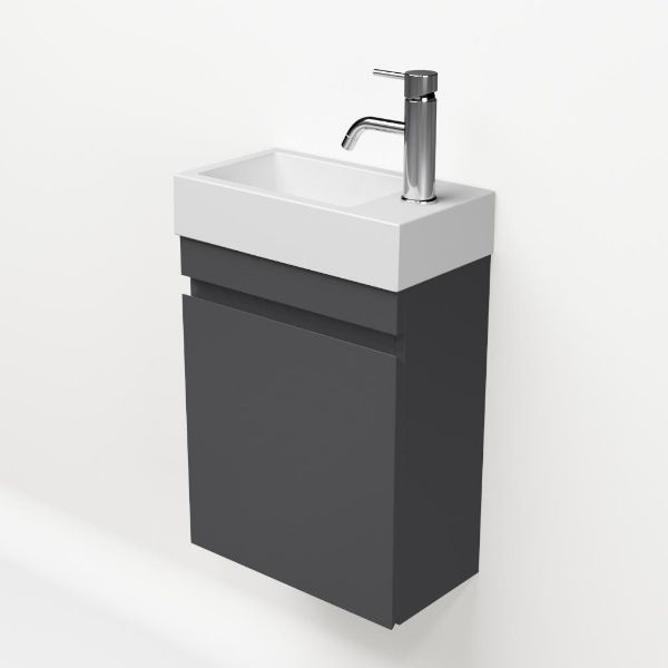 | | Bellanti Bona/Giada fonteinmeubel 40x22cm mat antraciet met mat wit polystone wastafel met kraangat links/rechts |