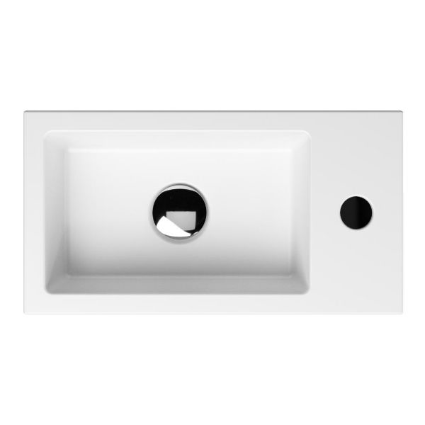 Greeploos fonteinmeubel in de kleur antraciet mat is 40 cm breed. De wastafel is vervaardig in quartz en heeft de kleur mat wit quartz met 1 kraangaten