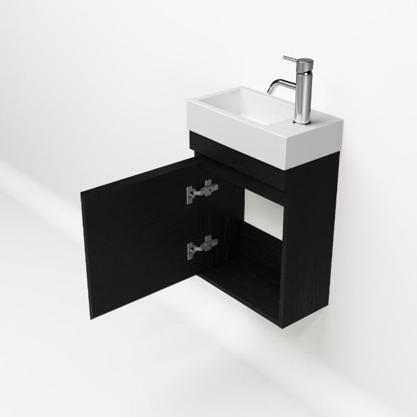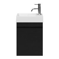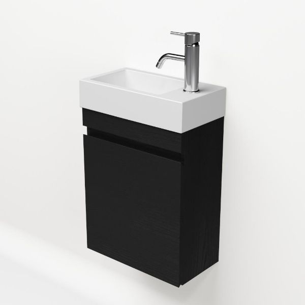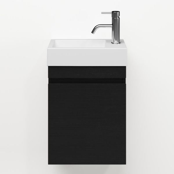 | | Bellanti Bona/Giada fonteinmeubel 40x22cm mat zwart eiken met mat wit polystone wastafel met kraangat links/rechts |