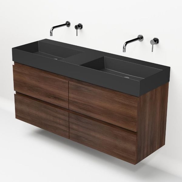 | Bellanti Gisella/Azzurra badmeubel 140x46 4 softclose laden walnoot greeploos keramische wastafel dubbel antraciet mat zonder kraangaten |