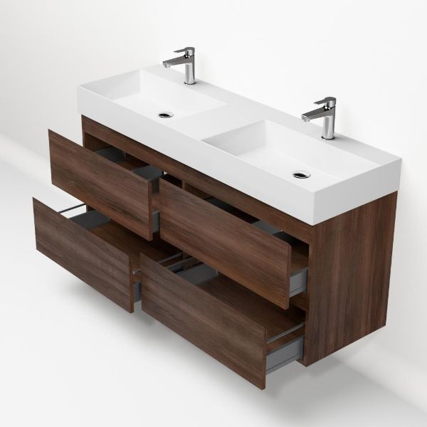 | Bellanti Gisella/Azzurra badmeubel 140x46 4 softclose laden walnoot greeploos keramische wastafel dubbel wit glans met 2 kraangaten |
