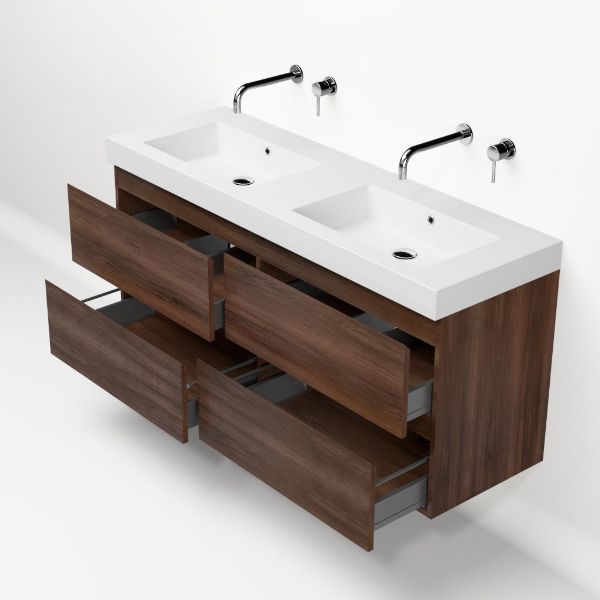 Bellanti Gisella/Esta badmeubel 140x46 4 softclose laden walnoot greeploos polystone wastafel dubbel wit zonder kraangaten