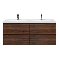Greeploos badkamermeubel in de kleur walnoot is 140 cm breed. De wastafel is vervaardig in quartz en heeft de kleur wit mat. Dit badkamermeubel met deze wastafel is leverbaar tussen de 60 cm t/m 200 cm