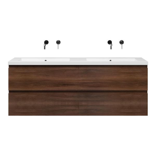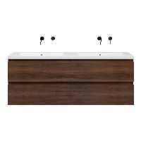 | | Bellanti Gisella/Esta-Q badmeubel 160x46 4 softclose laden walnoot greeploos quartz dubbele wastafel mat wit zonder kraangaten |