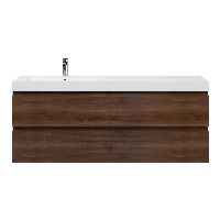Greeploos badkamermeubel in de kleur walnoot is 160 cm breed. De wastafel is vervaardig in polystone en heeft de kleur wit. Dit badkamermeubel met deze wastafel is leverbaar tussen de 60 cm t/m 200 cm
