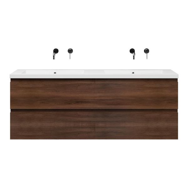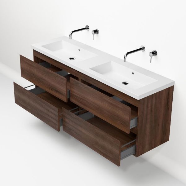 | | Bellanti Gisella/Esta badmeubel 160x46 4 softclose laden walnoot greeploos polystone dubbele wastafel wit zonder kraangaten |