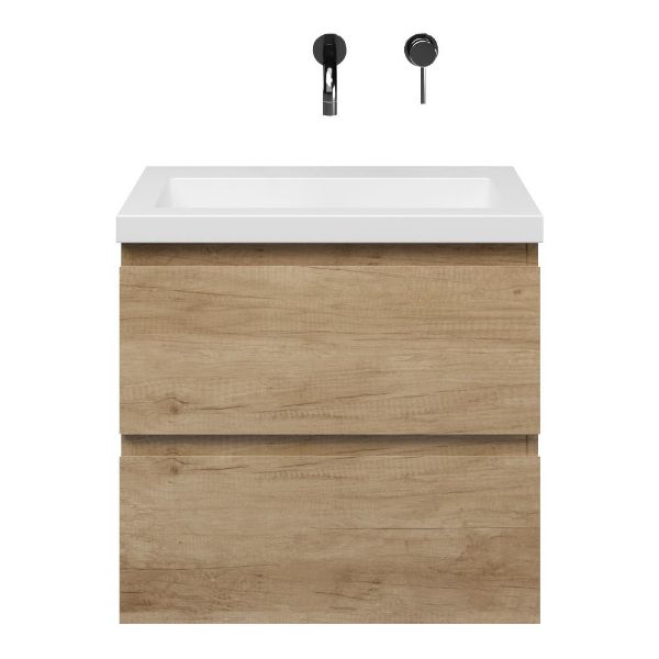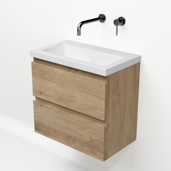 Ondiepe greeploos badkamermeubel in de kleur olm. Badmeubel is praktisch voor een compact badkamer. Het meubel van 60 cm breed is er. De wastafel is vervaardig in quartz en heeft de kleur wit mat quartz. Dit badkamermeubel met deze wastafel is leverbaar tussen de 60 cm t/m 120 cm.