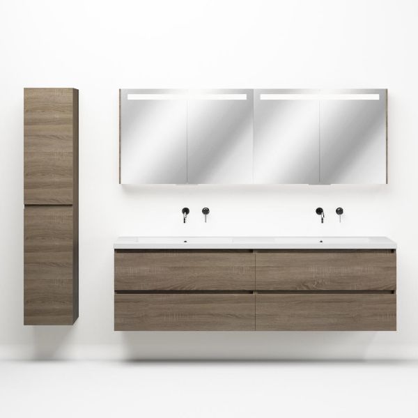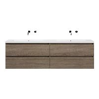 | | Bellanti Elena/Esta badmeubel 200x46 4 softclose laden donker eiken greeploos polystone dubbele wastafel wit zonder kraangaten |