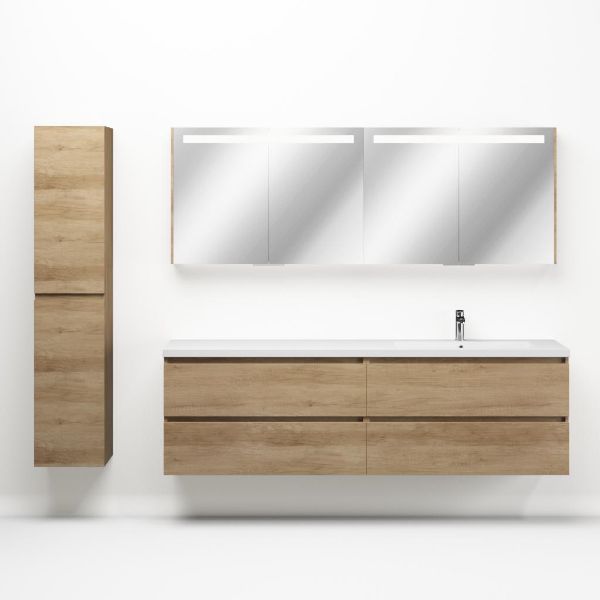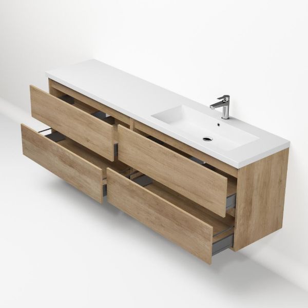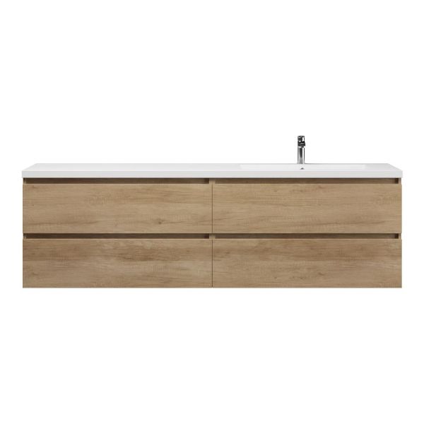Greeploos badkamermeubel in de kleur olm is 200 cm breed. De wastafel is vervaardig in polystone en heeft de kleur wit. Dit badkamermeubel met deze wastafel is leverbaar tussen de 60 cm t/m 200 cm