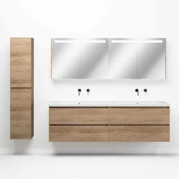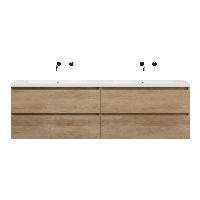 Greeploos badkamermeubel in de kleur olm is 200 cm breed. De wastafel is vervaardig in polystone en heeft de kleur wit. Dit badkamermeubel met deze wastafel is leverbaar tussen de 60 cm t/m 200 cm