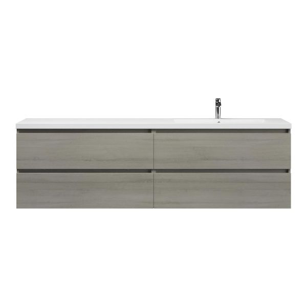 Greeploos badkamermeubel in de kleur eiken licht grijs is 200 cm breed. De wastafel is vervaardig in polystone en heeft de kleur wit. Dit badkamermeubel met deze wastafel is leverbaar tussen de 60 cm t/m 200 cm