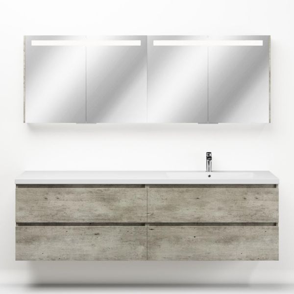 Greeploos badkamermeubel in de kleur steigerhout licht grijs is 200 cm breed. De wastafel is vervaardig in polystone en heeft de kleur wit. Dit badkamermeubel met deze wastafel is leverbaar tussen de 60 cm t/m 200 cm